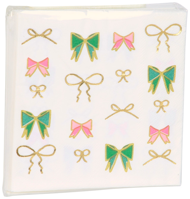 This 20-pack of Christmas cocktail napkins features festive foil bows, perfect for adding a touch of holiday cheer to any table setting. Napkins measure 5 in x 5 in.