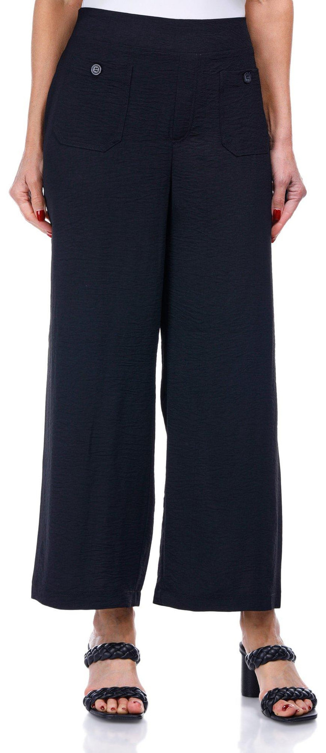 Introducing the Women's Pull On Culotte Capris, crafted from high-quality polyester for a comfortable and stylish fit. These capris feature a solid color design, an elastic waistband for ease of wear, convenient front pockets, and a 25-inch inseam with a capri cut. Perfect for casual outings or relaxed work environments, they effortlessly combine fashion and functionality, making them a versatile addition to your wardrobe.
