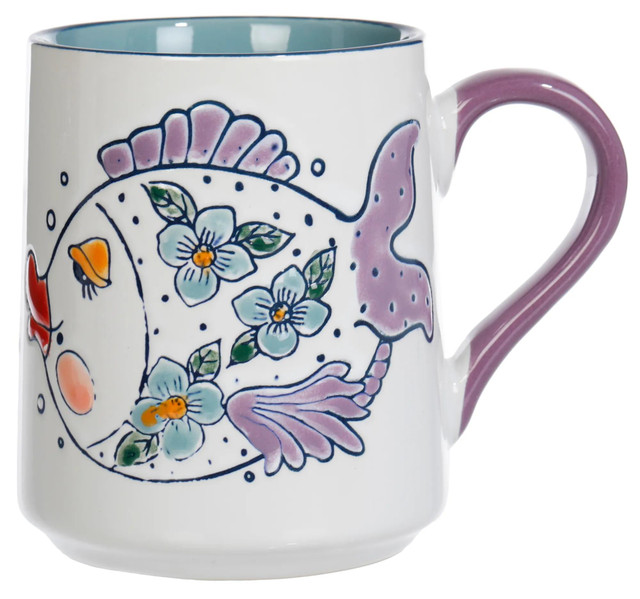 Add a splash of whimsy to your routine with the 18 oz Kissy Fish Ceramic Mug. Featuring a playful fish design and vibrant colors, this sturdy mug brings a fun, coastal vibe to every sip.