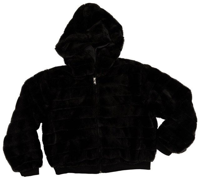 Introducing the Big Girls Faux Fur Zip Up Jacket, crafted from 100% polyester for a cozy and luxurious feel. This stylish jacket features a solid faux fur exterior, a full front zip closure, and a hooded neckline for added warmth and comfort. Perfect for chilly days or fashionable outings, this jacket is a must-have for any young trendsetter's wardrobe!