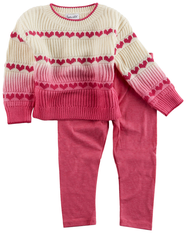 This baby girls 2-piece leggings set features a cozy knit sweater with a heart ombre design and solid leggings for easy pairing. Soft and sweet, it is perfect for everyday wear or special outings with a touch of charm.