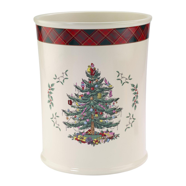 The Spode Christmas Tree® Tartan Wastebasket by Avanti brings a new twist to an old classic. The iconic Spode Christmas Tree, since 1938, it is now paired with a green and red tartan plaid border on an ivory body for a fresh look. Made of durable resin, measures 7.88L x 7.88W x 10H. Dimension - L = 7.88 x W = 7.88 x H= 10.0