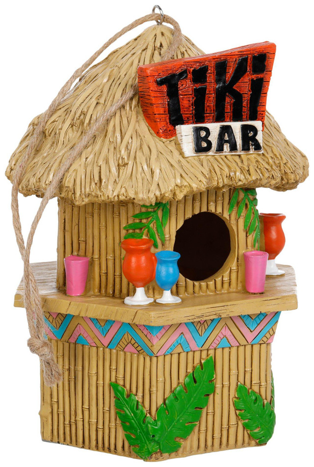 Welcome feathered friends in style with this 9 in Resin Tiki Bar Birdhouse, a delightful blend of beauty and function. Crafted from durable resin, this intricately designed birdhouse features a charming coastal motif, creating a cozy retreat for small birds while adding a touch of Florida charm to your garden or patio. Measures approximately 9 in x 6 in round.