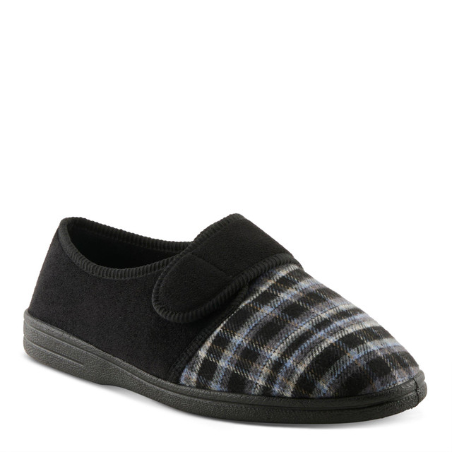 Heres an SEO-enhanEnjoy cozy versatility with Spring Step Mens Boris Slippers, vegan-friendly indoor/outdoor slippers crafted from micro suede and textile with a flannel design. Featuring a round toe, adjustable strap, padded microfiber insole, and durable rubber outsole, these slippers offer comfort, style, and a secure fit for everyday wear.