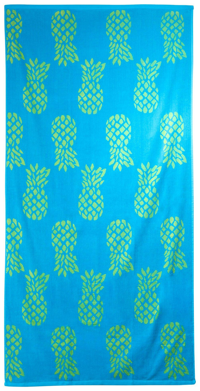 Tropical vibes meet plush luxury with this jacquard velour beach towel, featuring a bold pineapple design that brings a splash of paradise to your seaside lounging. Soft, absorbent, and richly textured, its a vibrant essential for sunny days and sandy escapes. Measures 36 in x 70 in.