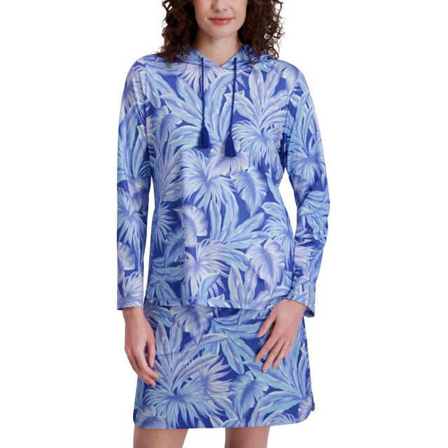 Embrace the vibrant energy of Spring with our lightweight hoodie. Featuring two convenient side seam pockets and a chic tassel tie detail, this hoodie combines functionality with style. The split side hem adds a touch of relaxed sophistication, while the colorful graphic designs make a bold statement. Perfect for a fresh, laid-back look, this hoodie is your go-to for effortless, relaxed styling. Fabrication 97% polyester, 3% spandex.