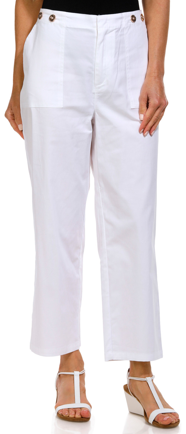 Upgrade your wardrobe with our Women's 26-inch Olga Wide Leg Capris. Made from cotton and spandex, these capris feature a stylish solid color and convenient side pockets. The wide leg fit and 25-inch inseam offer a comfortable and chic look, perfect for any casual or semi-formal occasion. Add these versatile capris to your collection for a blend of style and comfort.