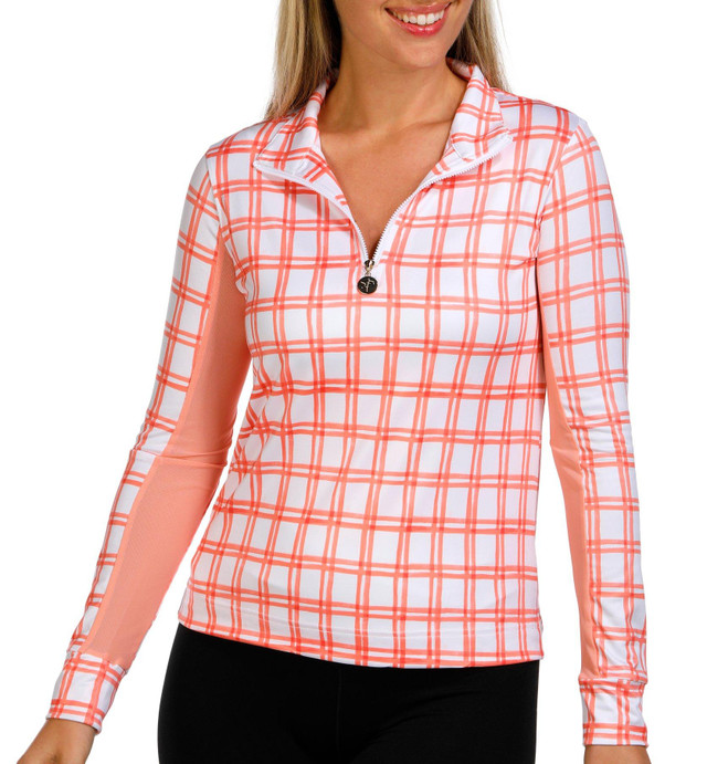 Step up your style and performance with the Active Window Pane Print Golf Top. Featuring a modern window pane print, quarter zip neckline, and long sleeves, it offers UPF 50 protection, quick dry fabric, moisture wicking, and performance stretch. Fabrication 95% polyester, 5% spandex