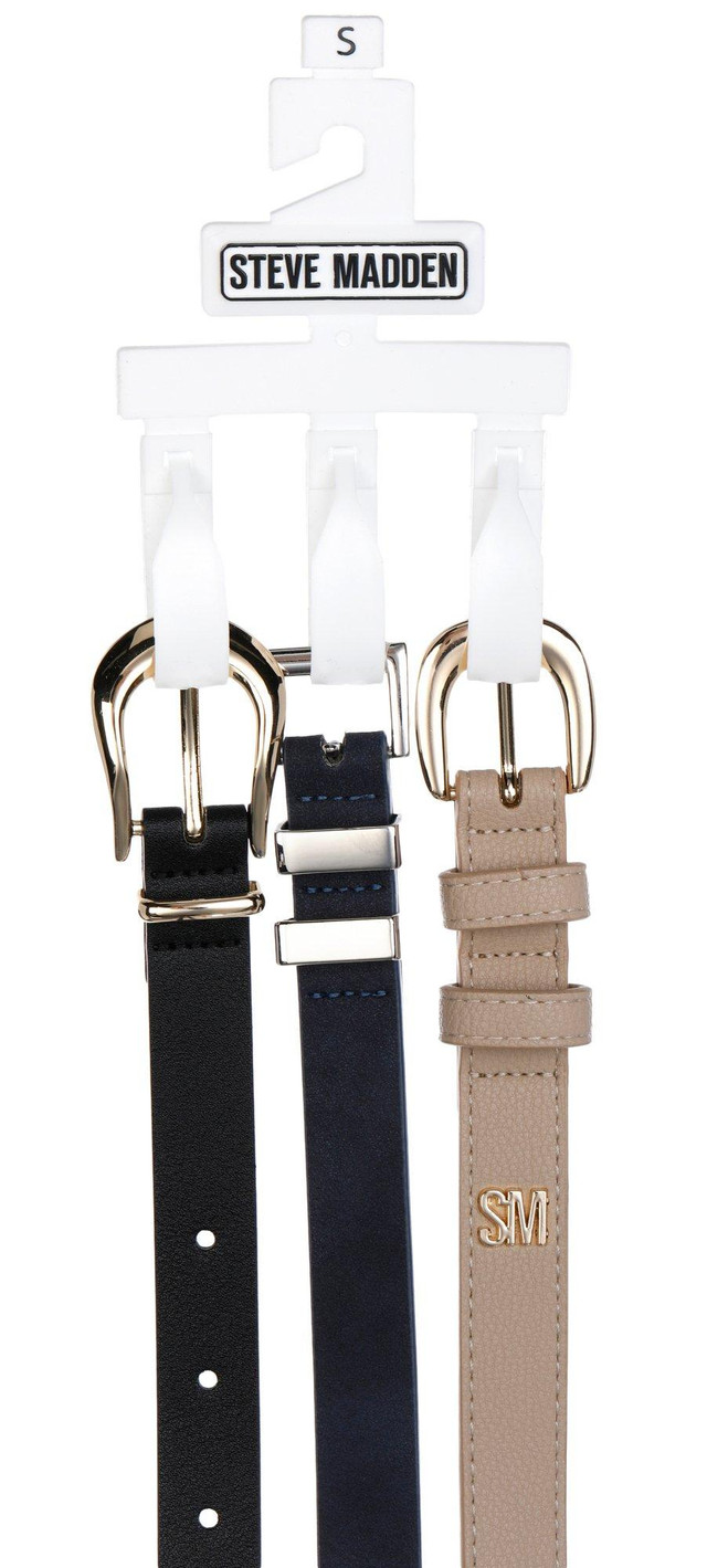 Upgrade your wardrobe with a set of three womens belts designed for versatility and everyday style. Each belt features a sleek metal buckle and adjustable fit for all-day comfort. Whether you're pairing them with jeans, dresses, or layered outfits, these belts offer a polished finish and effortless coordination. Perfect for switching up your look or sharing the style.