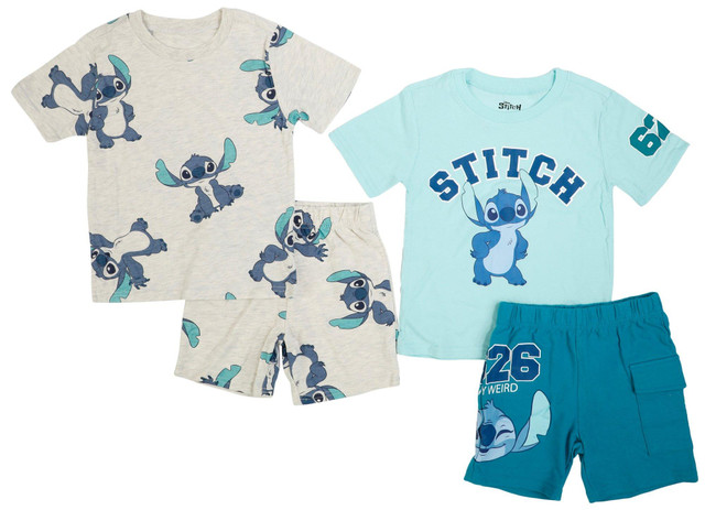 The Little Boys 4 Pc Shorts Set brings playful style to his wardrobe with two comfy t-shirts and two pairs of shorts, all featuring fun Stitch graphic designs. Made from a soft cotton-polyester blend, this set is perfect for mixing, matching, and everyday adventures.