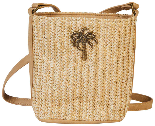 Bring tropical vibes wherever you go with this chic straw crossbody bag, featuring a textured woven design and a beaded palm tree embellishment. Lightweight with an adjustable strap, its perfect for beach days, vacations, or casual summer outings.
