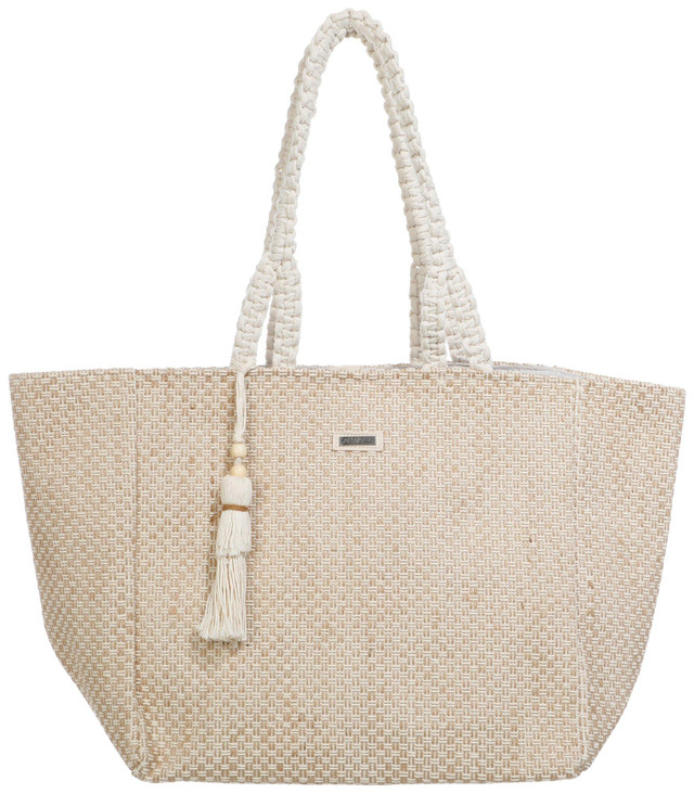 Sunshine meets sophistication in this beautifully crafted straw beach tote shoulder bag, designed for both style and function. Featuring comfy shoulder straps, a secure snap top, and a spacious interior, it keeps your essentials organized with a zippered pocket and two open pockets. Includes a matching tassle for a stylish accent. Whether you're seaside or city-bound, this tote is your perfect sunny-day companion. Measures approximately 14 in x 12 in x 8.5 in.