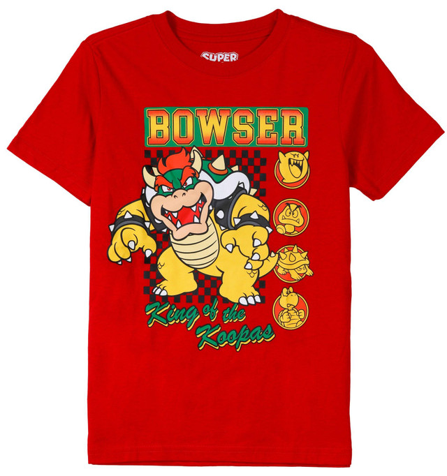 Add bold character to everyday outfits with the Big Boys Bowser Screen TShirt. Featuring a striking Bowser screenprint, it brings iconic Super Mario style to casual wear with comfort and attitude. Ideal for school, gaming days, or relaxed play. Fabrication is 60% cotton, 40% polyester.