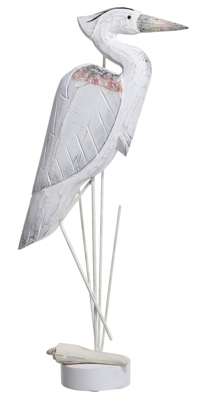 Add a touch of coastal charm to your home with this 29 in Large Heron Décor. This beautifully crafted piece features a large white Heron sculpture on stand is hand-crafted with a white-washed finish. Ideal for any room, it brings a seaside flair that complements both modern and traditional decor. Measures approximately 29 in x 13 in x 6 in.