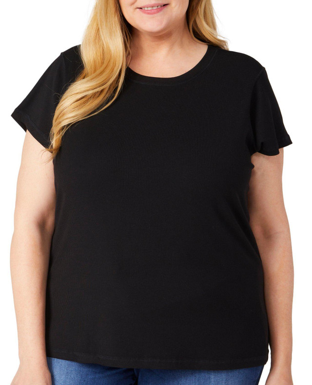 Soft ribbed fabric meets everyday ease in this short sleeve top, designed with a classic crew neck and a flattering, close-to-body fit. Its the kind of staple that feels as good as it looks, perfect for layering or standing effortlessly on its own. A go-to piece for comfort with a touch of polish. Fabrication is 91% modal, 9% elastane.