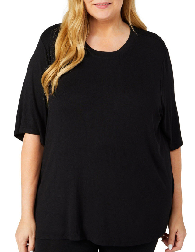Upgrade your basics with our Plus Solid Short Sleeve Crew Neck Top. Made from a blend of micromodal and spandex, this top offers a soft and comfortable fit. The stylish solid color and crew neckline provide a classic look, while the short sleeves add versatility for warm weather. With a 28-inch length, this top is perfect for any casual occasion. Add this essential piece to your wardrobe for a chic and effortless style.