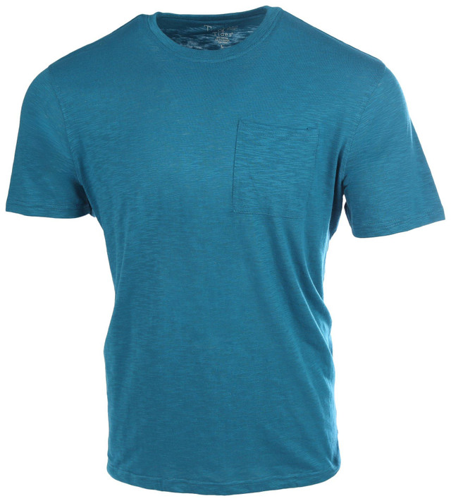 This solid tee features a solid color design on soft lightweight knit fabric, short sleeve, front chest pocket, and a crew neckline. Fabrication 60% cotton and 40% polyester. This shirt measures approximately 28 in length.