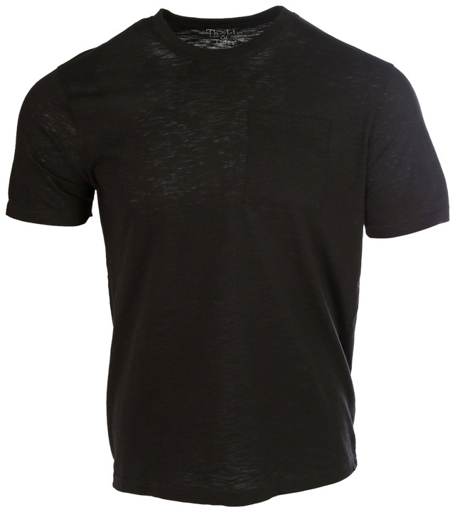 This solid tee features a solid color design on soft lightweight knit fabric, short sleeve, front chest pocket, and a crew neckline. Fabrication 60% cotton and 40% polyester. This shirt measures approximately 28 in length.