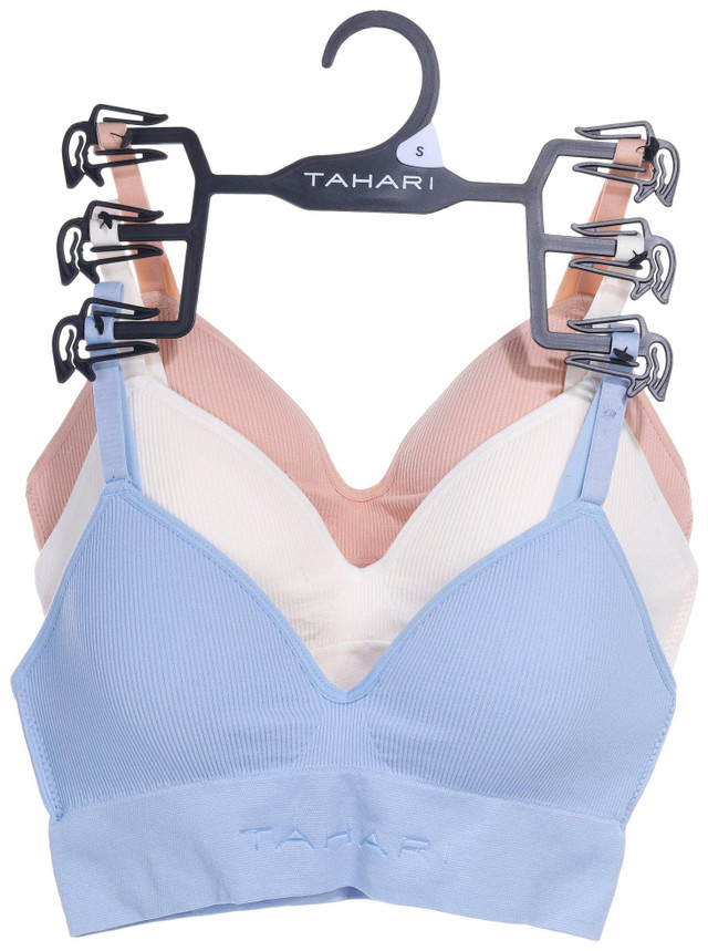 Elevate your everyday essentials with the Tahari 3-Pack Seamless Comfort Brayour go-to choice for style, comfort, and versatility! Seamless Fabrication: Crafted with seamless fabrication, these bras provide a smooth, invisible look under any outfit, ensuring all-day comfort.Versatile Pack: This set includes three bras, offering you a variety of options to mix and match with your favorite outfits.
