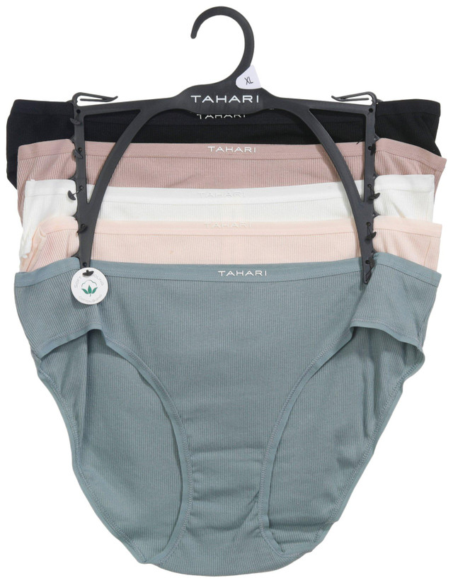 The Tahari 5-pk. Cotton Hipster women's underwear features breathable fabric for a flattering look, and cooling comfort. Full rise and full coverage. Fabrication 100% cotton.