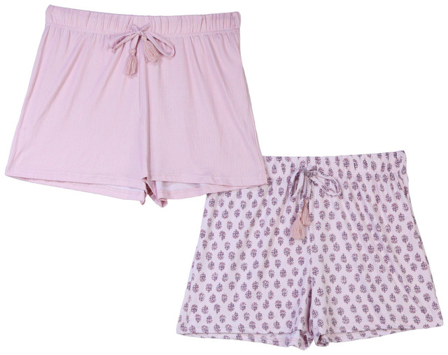 Tahari Women's sleep short pack features two distinct pairs designed for all-night comfort. One comes in a soft solid purple while the other showcases a gentle floral print. Made from fabric that feels smooth and cool to the touch, both shorts are perfect for relaxed evenings and easy sleepwear style.