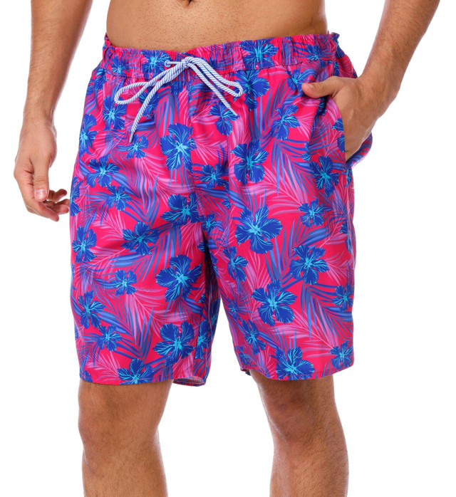 Turn up the heat in the Men's Hibiscus Bliss Swim Shorts. Featuring a vibrant floral print, drawstring waistband, side seam pockets, one back pocket, and built-in moisture-wicking, quick-dry fabric with SPF 30 protection, they're made for sun-soaked adventures. Fabrication 100% polyester.