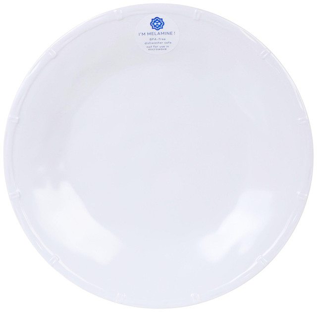 Bring tropical charm to your table with the 10.5 in Bamboo Raised Rim Melamine Dinner Plate. Designed with a solid color and a raised bamboo style rim, it combines natural elegance with everyday durability. Made from BPA free melamine, ideal for outdoor dining and the Florida lifestyle. Dishwasher safe for easy care. Measures approximately 1 in x 10.5 in round.