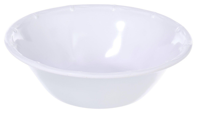 Add tropical style to your table with the 6.5 in Bamboo Raised Rim Melamine Small Bowl. Featuring a solid color design with a raised rim that mimics bamboo, it offers a refined look with everyday durability. Made from BPA free melamine, perfect for outdoor dining and the Florida lifestyle. Dishwasher safe for easy care. Measures approximately 2 in x 6.6 in round.