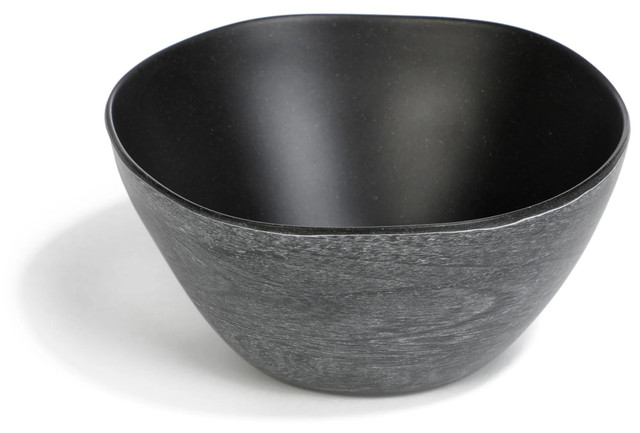 Elevate your table with the 6 in Faux Blackened Wood Cereal Bowl. Featuring a stylized faux wood designa and smooth edge, it's crafted from durable, BPA free materials. Ideal for outdoor dining and suited to the Florida lifestyle. Dishwasher safe for easy care. Measures approximately 3 in x 6 in round.