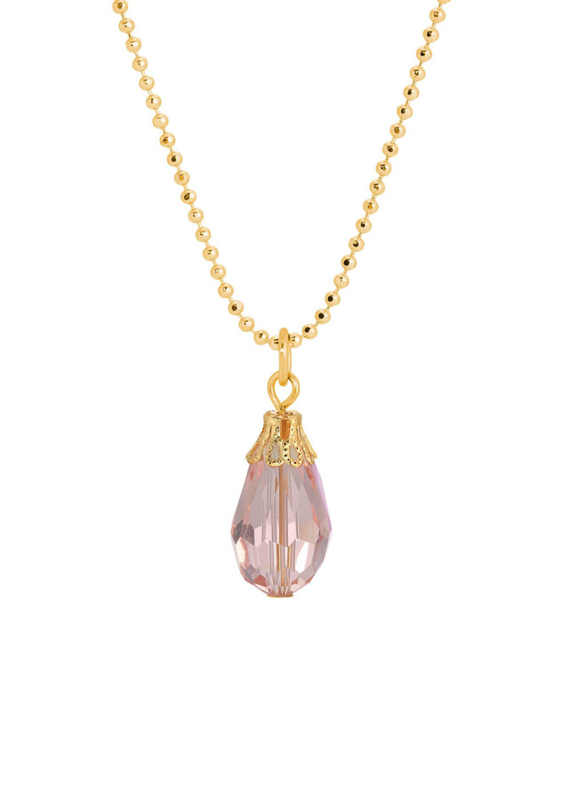 This pendant crystal necklace features a delicate, teardrop-shaped crystal that catches the light with its soft hue. The pendant is elegantly framed and hangs from a matching beaded chain, adding a touch of sophistication to any outfit. Perfect for both casual and formal occasions, this necklace offers a subtle yet striking addition to your jewelry collection. Length 16 in., width 9 mm.