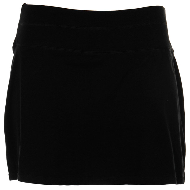 This pull on skort features an attached under shorts, a wide elastic waistband with invisible panel, and a solid color design. Measures approximately 17.5'' in length.