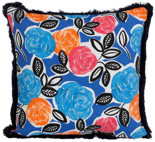 Add bold elegance to your space with this 18x18 decorative pillow by Terrasol, featuring a vibrant multi-color floral print. The design is beautifully framed with a royal purple trim, blending eye-catching color and cozy texture. Perfect for adding a cheerful accent to your living room, bedroom, or favorite reading nook.