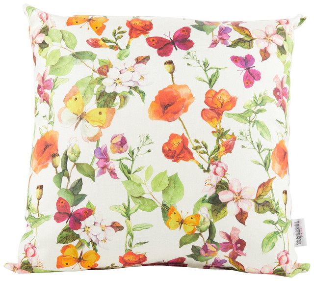 Brighten your space with this 20 inch square outdoor pillow, featuring a vibrant floral print. Made for style and durability, it adds a colorful touch to patios, porches or sunrooms while doubling as a cheerful focal point for any seating area. Fabrication is 100% polyester. Measures approximately 20 in x 20 in.
