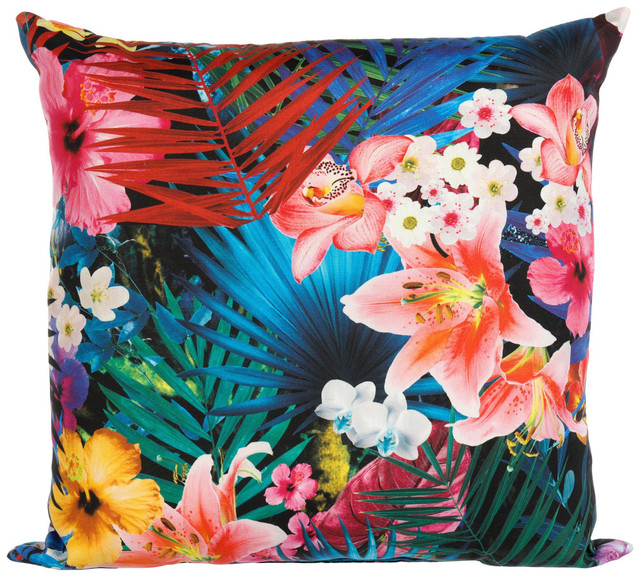 Brighten your space with this 20 inch square outdoor pillow, featuring a vibrant tropical floral print. Made for style and durability, it adds a colorful touch to patios, porches or sunrooms while doubling as a cheerful focal point for any seating area. Fabrication is 100% polyester. Measures approximately 20 in x 20 in.