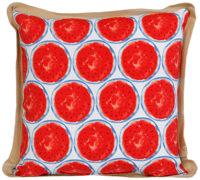 Make your space pop with this 20in.x20in. decorative pillow from Terrasol. Bold red fruit slices outlined in blue give it vibrant energy, while the rich brown trim anchors it with warmth. Its not just festiveits the focal point your room didnt know it was missing.