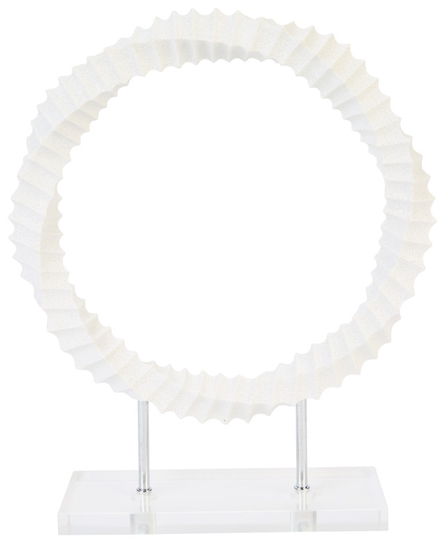 Add modern elegance to your space with this 17-inch Resin Circle Home Accent on a sturdy base. Featuring a sleek circular design with a smooth resin finish, it serves as a striking focal point for shelves, tables, or mantels. Perfect for contemporary décor, this piece blends simplicity with artistic charm.