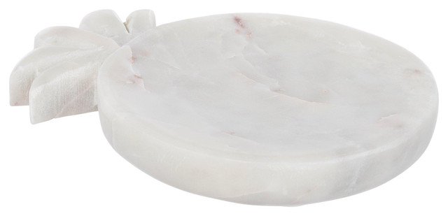 Add a tropical touch to your décor with this elegant Marble Pineapple Tray. Measuring 11 in x 8 in, its perfect for serving small items or displaying jewelry, candles, or keepsakes. The marble finish adds a clean, modern look to any space.