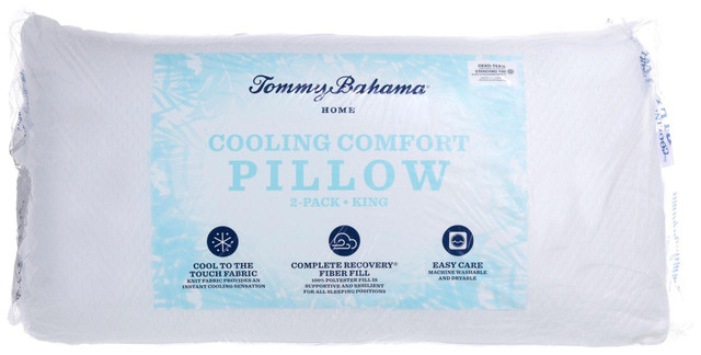 Sleep cool and supported with this 2-pack of Cooling Comfort Pillows. Designed to feel cool to the touch, each pillow is filled with plush, supportive fiberfill that cradles you through the night. Easy to care for and built to last, they offer refreshing comfort and reliable softness, perfect for warm sleepers and everyday luxury. Each measures 20 in x 36 in.