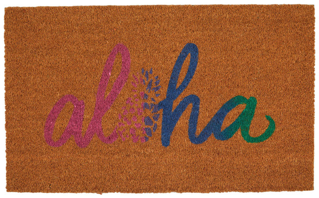 Welcome guests with our Aloha Coir Door Mat, measuring 18x30 inches and featuring a charming Aloha script. Crafted from durable coir, this mat offers excellent dirt-trapping capabilities while adding a touch of tropical warmth to your entryway. Its sturdy construction ensures long-lasting use, making it both practical and stylish.