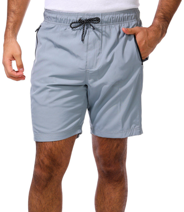 Stay ready for action in the Men's Tech Shorts. Designed in a solid color with a drawstring waistband, they feature side zip pockets and a back pocket for secure storage. Perfect for workouts or weekends, these shorts blend function and comfort effortlessly.