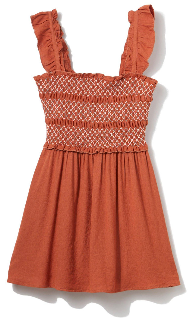 Stay effortlessly stylish this season with the Juniors Smocked Linen Babydoll Dress. Featuring a smocked upper with delicate embroidered detailing, this breezy linen dress offers a flattering fit and charming flair. Fabrication 55% rayon, 45% polyester