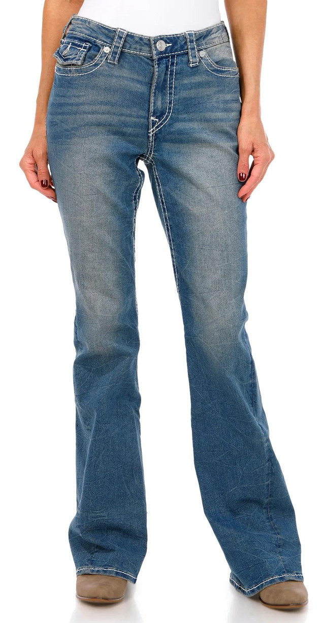 The Womens Joey Mid Rise Flare Jeans bring a classic silhouette with a modern edge. Featuring a flattering mid-rise fit and stylish flare leg, these jeans offer comfort and versatility for effortless day-to-night looks. Perfect for pairing with boots or heels.