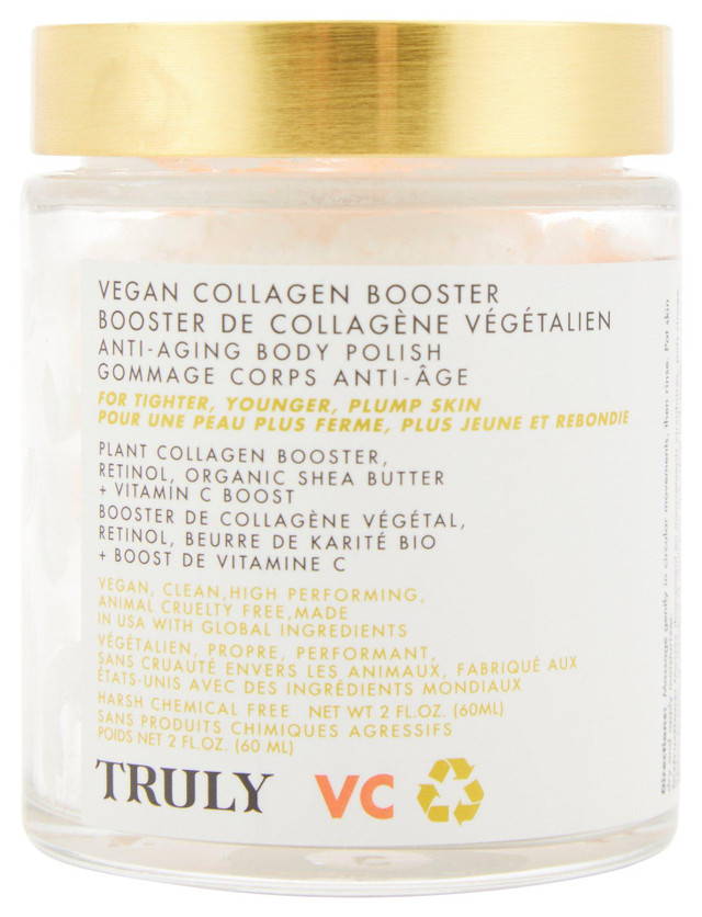 Reveal firmer, youthful looking skin with the Vegan Collagen Anti-Aging Body Polish, enriched with Vitamin C, Retinol, and Shea Butter. This formula gently exfoliates while promoting collagen production and improving skin texture. Hydrating and restorative, it supports plumpness and elasticity with every use. Ideal for full body exfoliation twice weekly in your skincare regimen. Contains 2 oz.