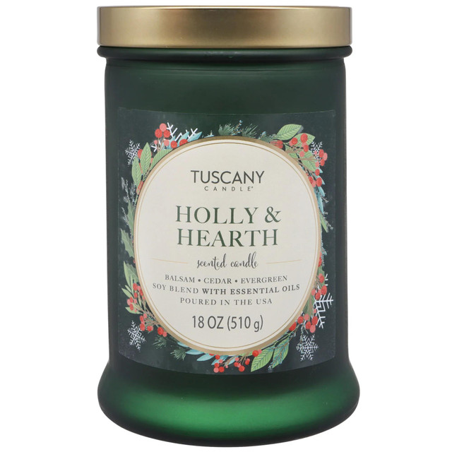 Wrap your space in the comforting scent of the season with this 18 oz Holly & Hearth Candle. Notes of balsam, cedar, and evergreen create a warm, woodsy aroma that is perfect for cozy nights and holiday gatherings.