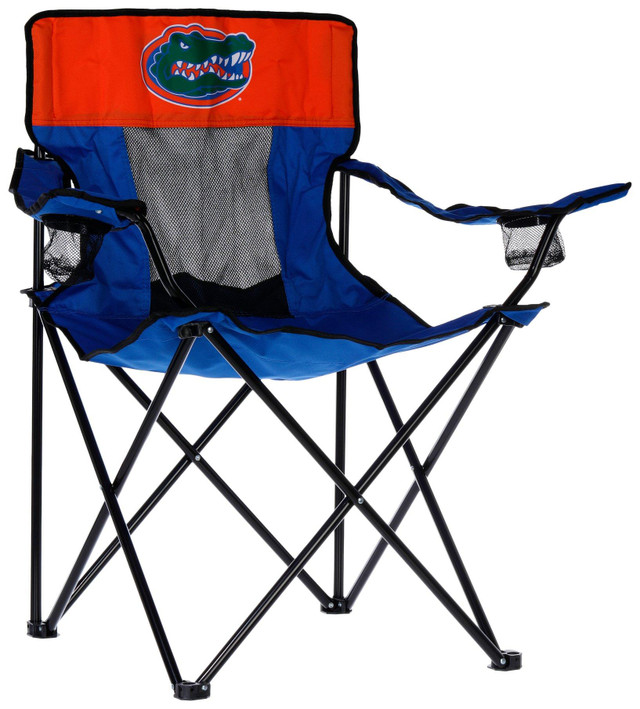Relax in team spirit with the Florida Gators Elite Chair. Built for comfort and durability, this chair measures 22.5 in x 34.5 in x 34 in frame with a seating area of 18 in x 23 in. It supports up to 275 lbs, making it perfect for tailgates, camping, or watching the game. Includes armrests, a built-in cup holder, and a carry bag with team graphics. Folds easily for storage and transport. A must-have for any Gators fan!