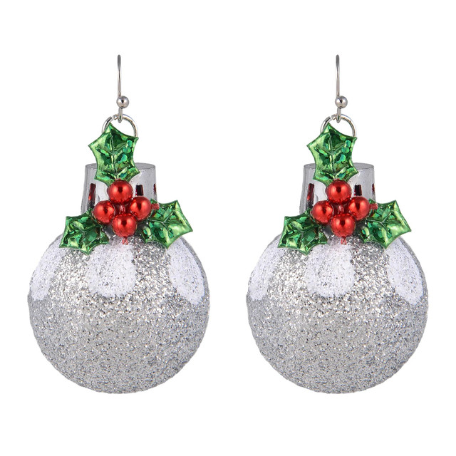 Uncas Christmas Glitter Ball Ornament Drop Earrings