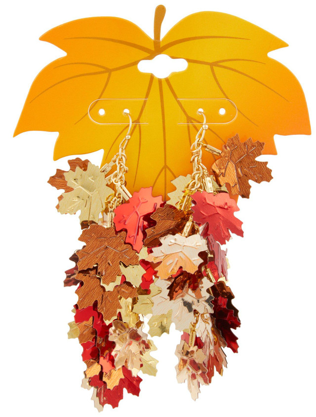 Celebrate the beauty of autumn with the Harvest Gold Tone Leaves Cluster Dangle Earrings featuring a cascading arrangement of multicolored leaves. A warm seasonal accent ideal for fall gatherings or everyday wear. Measures approximately 3.5 in drop.