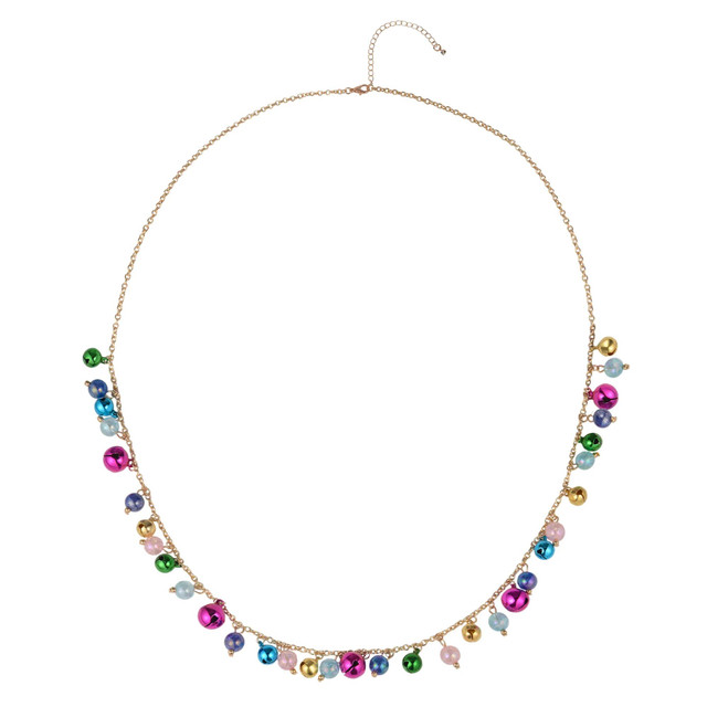 Let the season sing with every step. This necklace features a cheerful mix of multicolor jingle bells that dance and chime with movement, adding a playful rhythm to your holiday style. Whether you are heading to a party or wrapping gifts at home, this piece brings a joyful sparkle that feels like laughter in jewelry form. It is lighthearted, colorful, and made for those who love to wear their holiday spirit out loud.