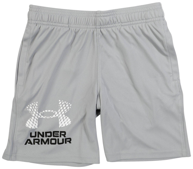 Designed for comfort and performance, these boys' shorts feature an encased elastic waistband with an internal drawcord, handy side pockets, and a bold logo on the leg. Made with quick-drying UA Tech fabric thats ultra-soft and sweat-wickingperfect for all-day play. Inseam measures approximately 7 inches.