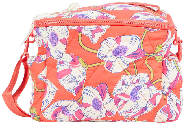 The Vera Bradley Swirling Poppies Lunch Cooler is the perfect solution for keeping your meals fresh on the go. Whether you're heading to work, school or a weekend adventure, this cooler offers the ideal way to transport your favorite foods and drinks. Featuring an exterior pocket and made of a quilted nylon material. Measures 8.25 in x 7.75 in 7 in.